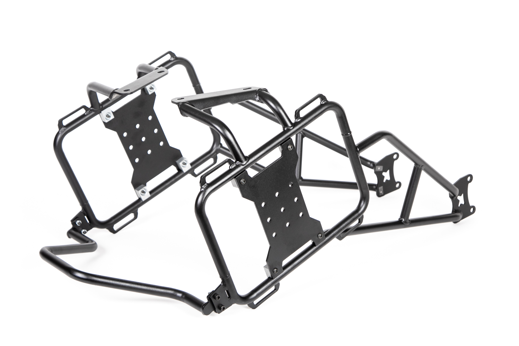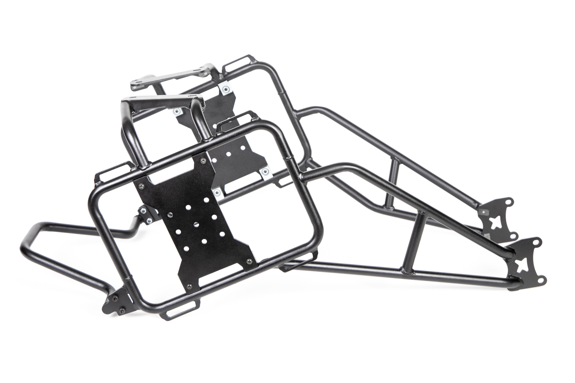 Diseñado por Adventure Moto Australia y fabricado por Outback Motortek. Las nuevas estructuras en X son los soportes de maletas laterales más universales y funcionales hasta la fecha, lo que permite un montaje sencillo y seguro de Rotopax, maletas duras y blandas.
